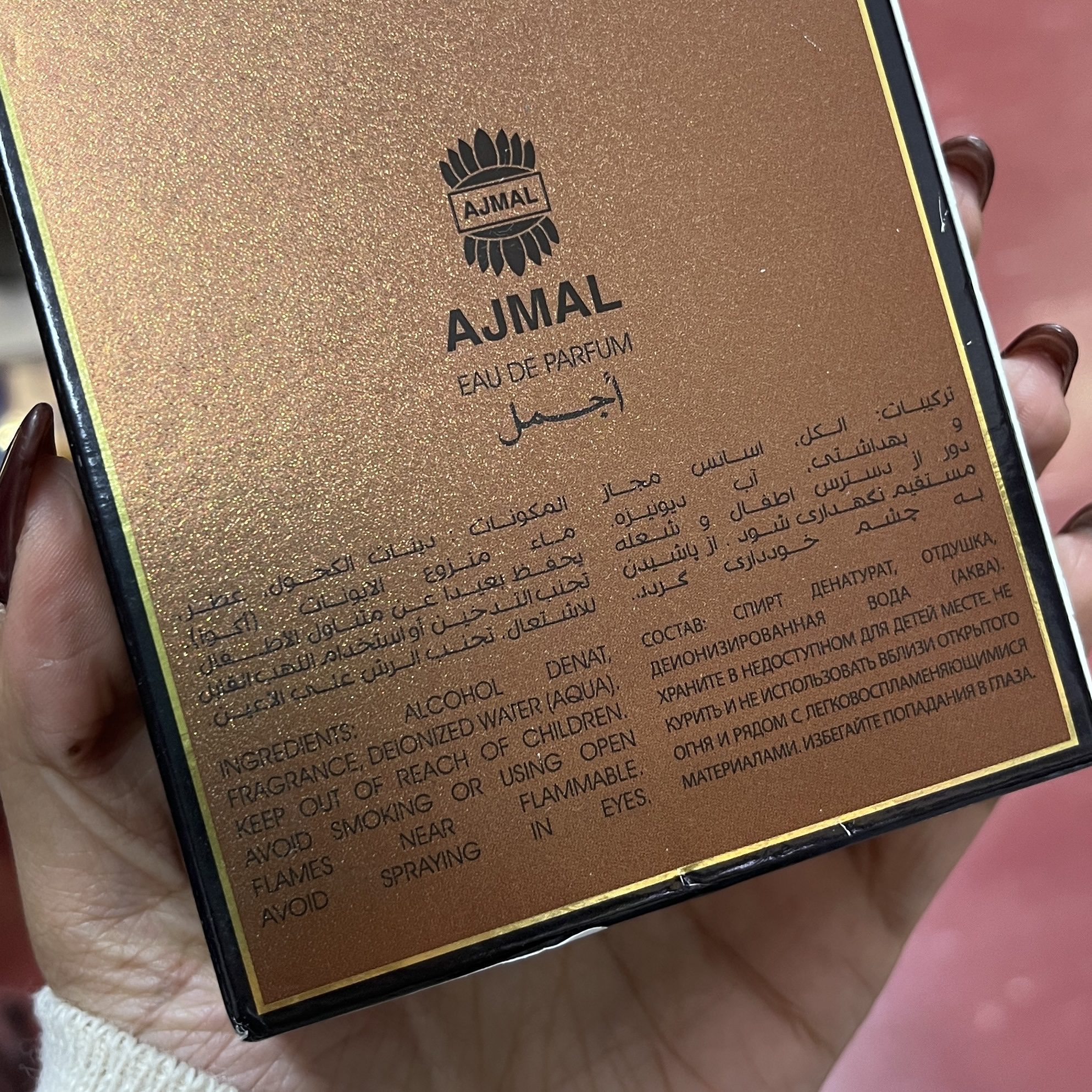- ظرف و بستهبندی شکیل: نمایانگر برند Ajmal و اصالت محصول.