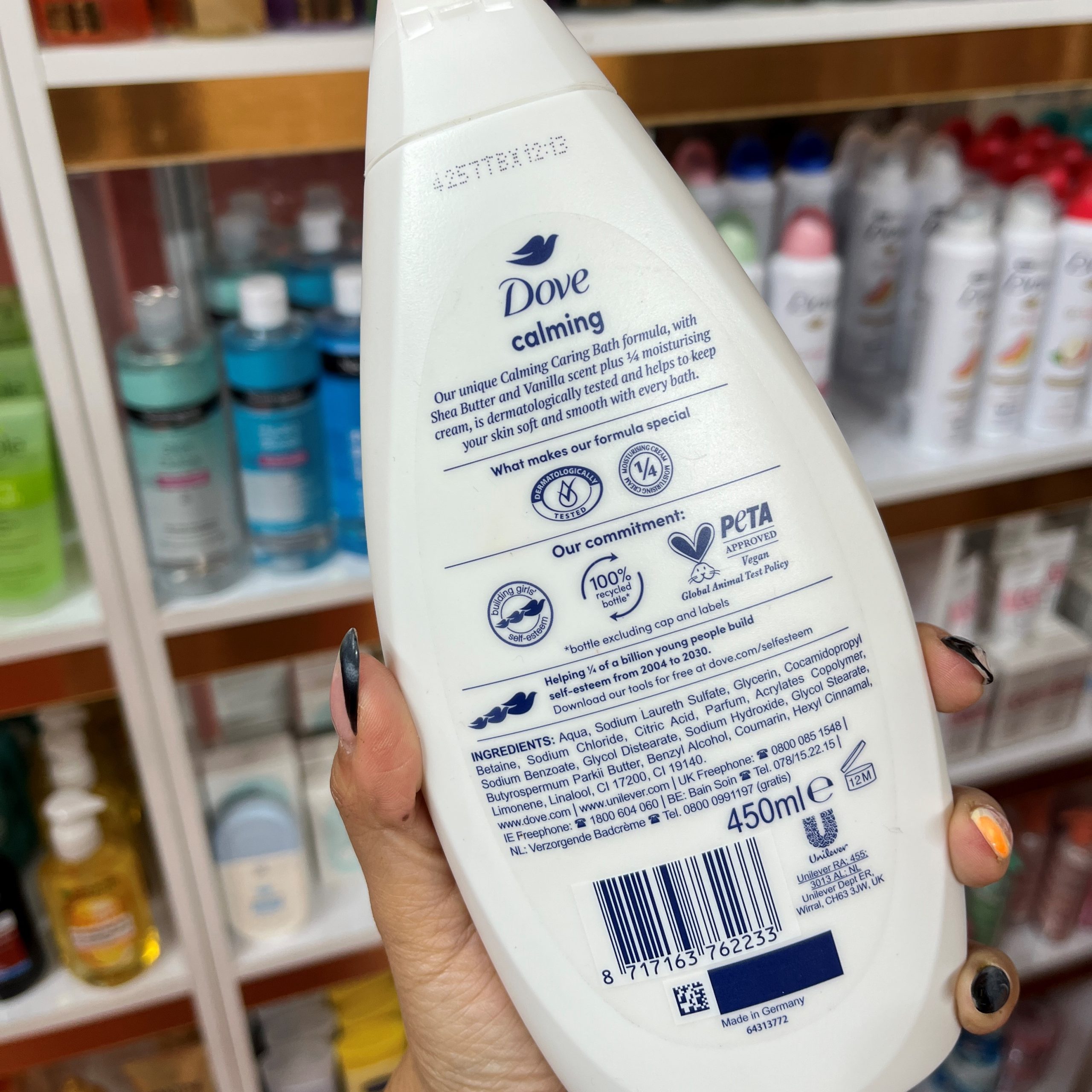 - محصول اورجینال Dove؛ شامپو/باثسوک ملایم Calming Caring Bath