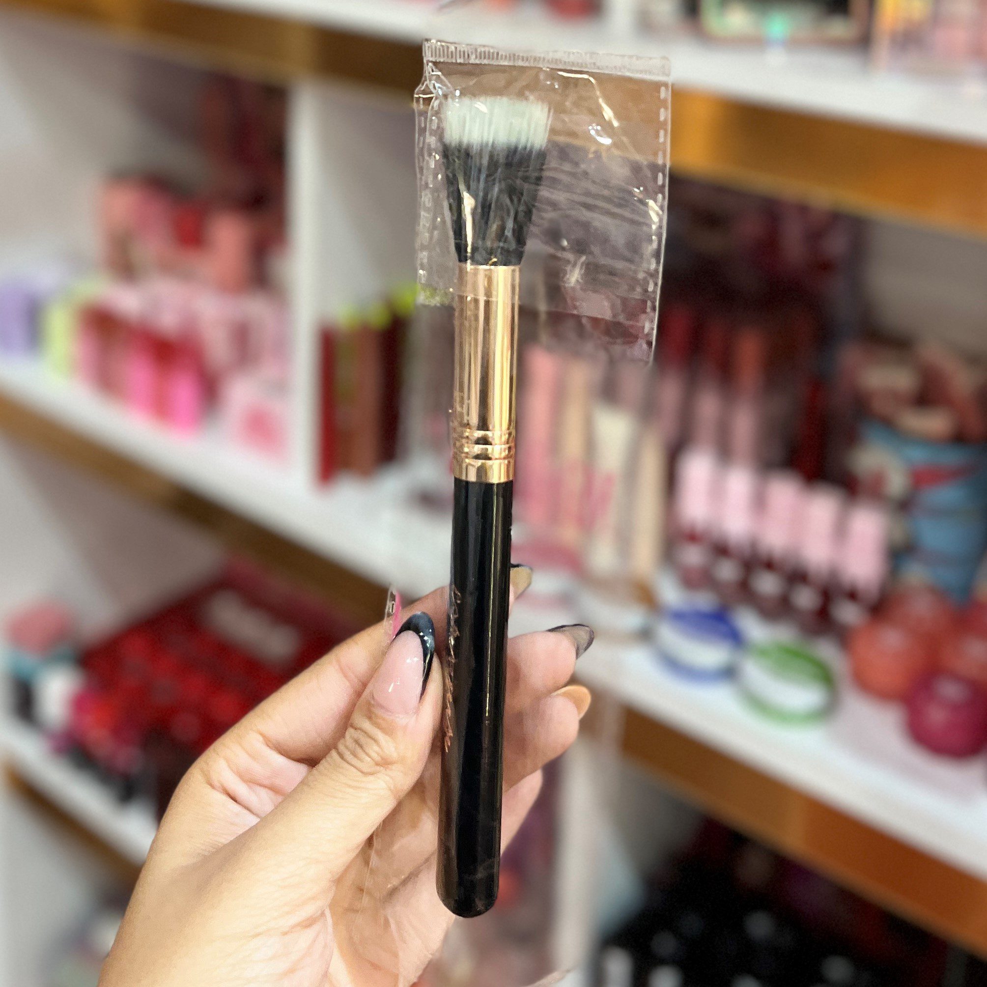 این براش برای پودری بهینه شده؛ برای مایع/کرمی از براش فلت یا اسفنج نمدار استفاده کنید.