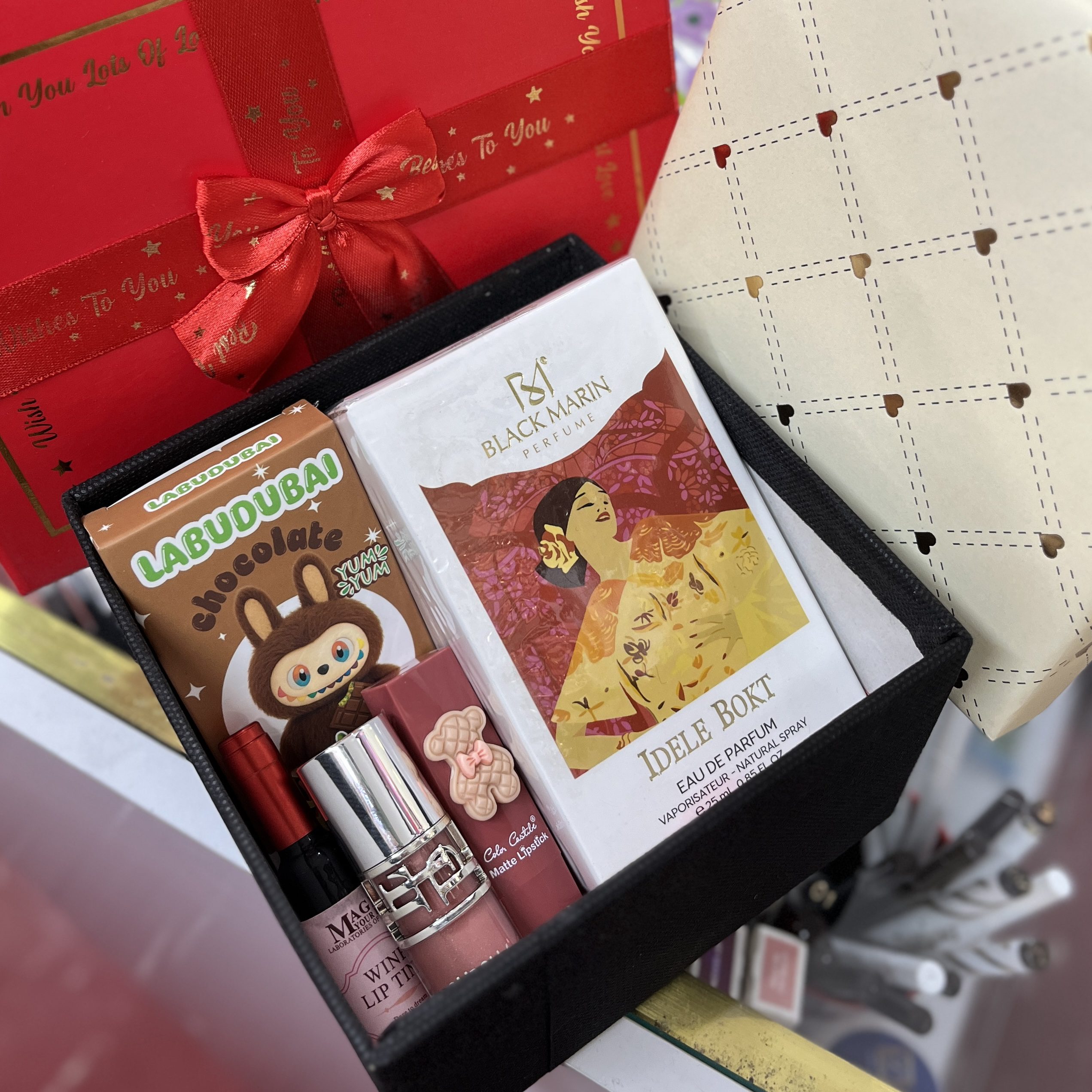 - شامل لوازم آرایشی، عطر، شکلات و آبنبات